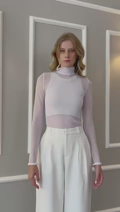 Blusa de tule, manga longa e golinha. Blusa tipo 2a pele.